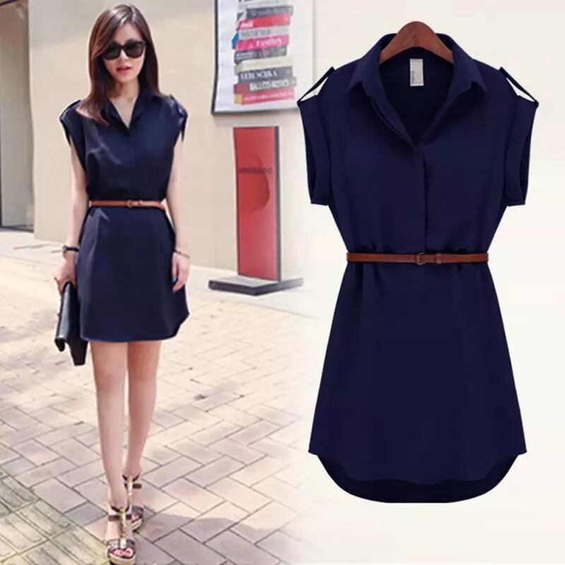 ★送料無料★ 2色 ベージュ レディース ワンピース ベルト付 ウエストマーク 半袖 膝上 ミドル 女性 大きいサイズ S M L XL 2XL
