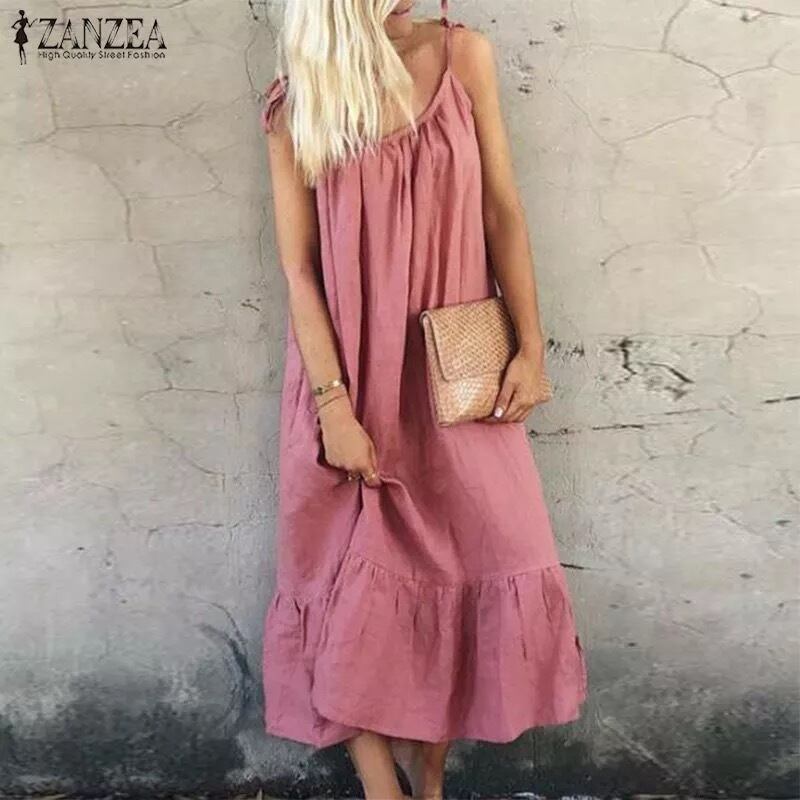 ★送料無料★ 3色 ピンク レディース リラックス ワンピース シンプル ゆるワンピ ノースリーブ 膝下 ミドル 女性 大きいサイズ S M L XL 2XL 3XL 4XL 5XL