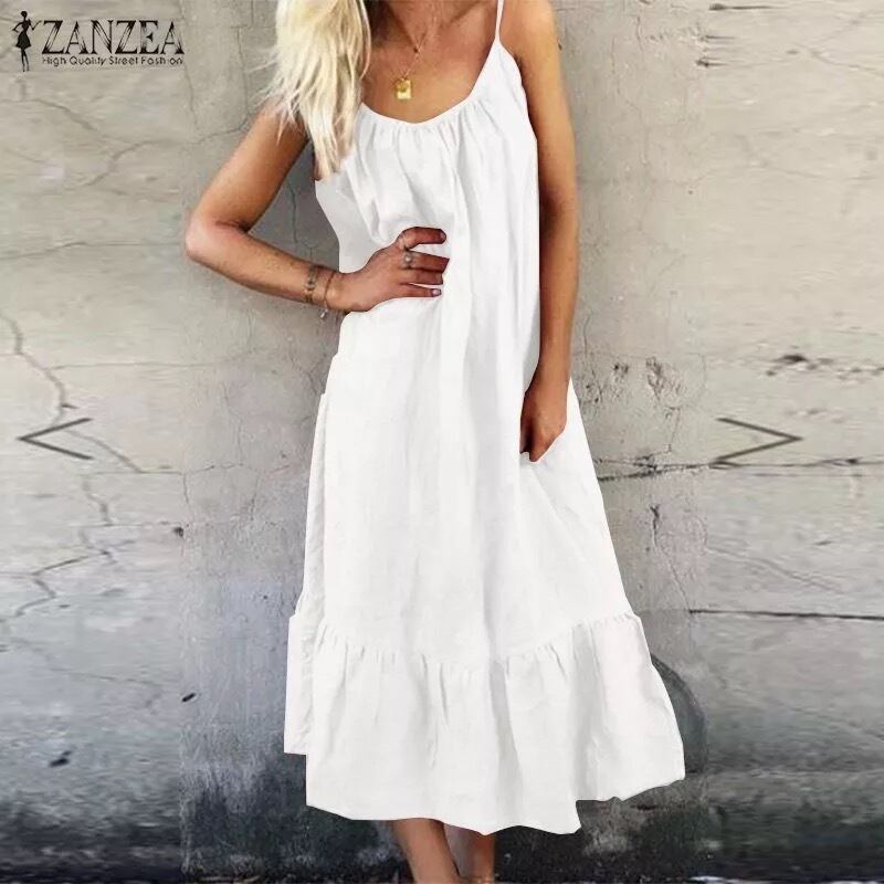 ★送料無料★ 3色 ホワイト 白 レディース リラックス ワンピース シンプル ゆるワンピ ノースリーブ 膝下 ミドル 女性 大きいサイズ S M L XL 2XL 3XL 4XL 5XL