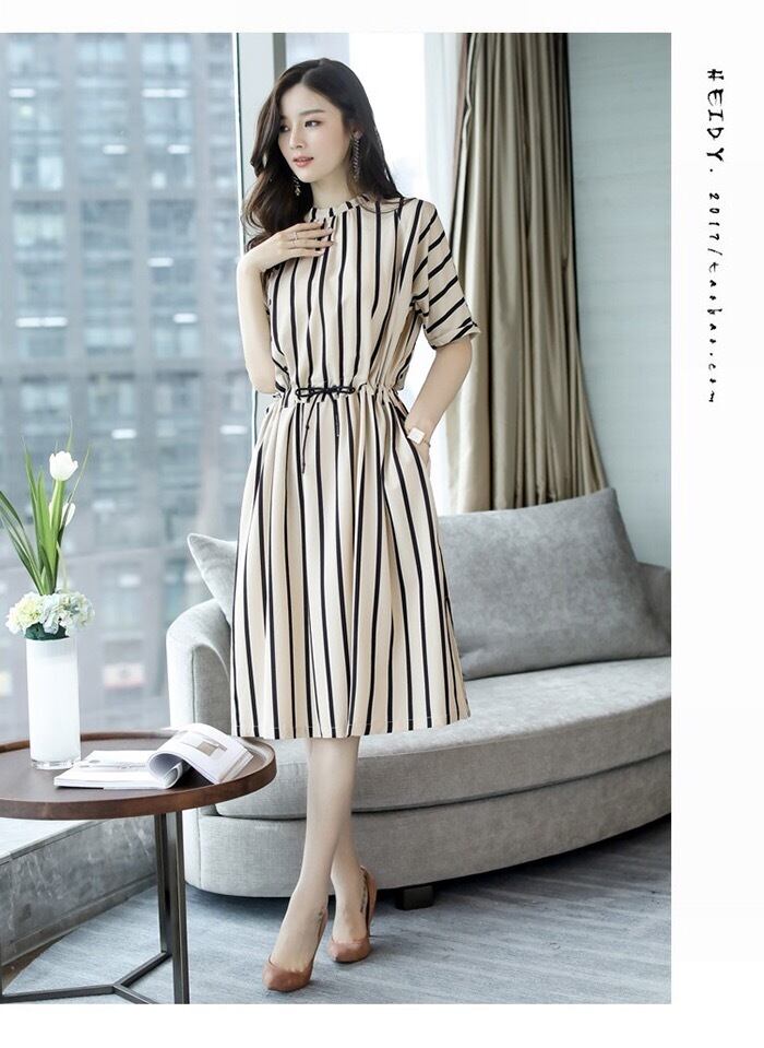 ★送料無料★ 2色 ブラック 黒 レディース ワンピース ストライプ 膝丈 モノトーン ミドル 女性 大きいサイズ M L XL 2XL 3XL 4XL