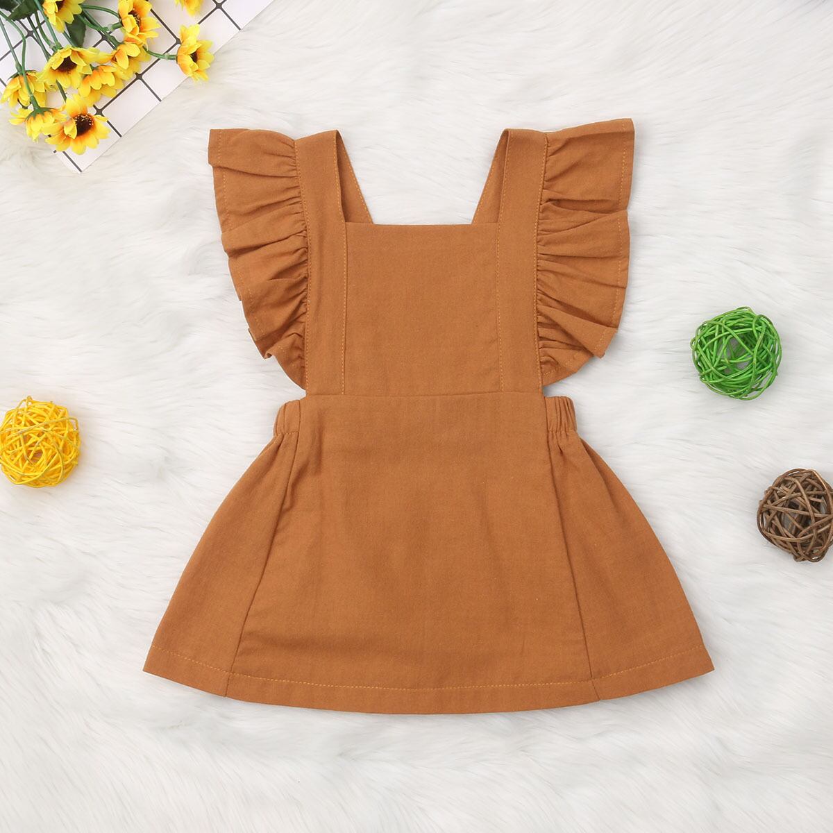 ★送料無料★ 女の子 ワンピース 6色 オレンジ 橙 フリル 子供 キッズ ベビー 赤ちゃん コットン かわいい おしゃれ 0歳 6カ月 1歳 2歳 3歳 4歳 5歳