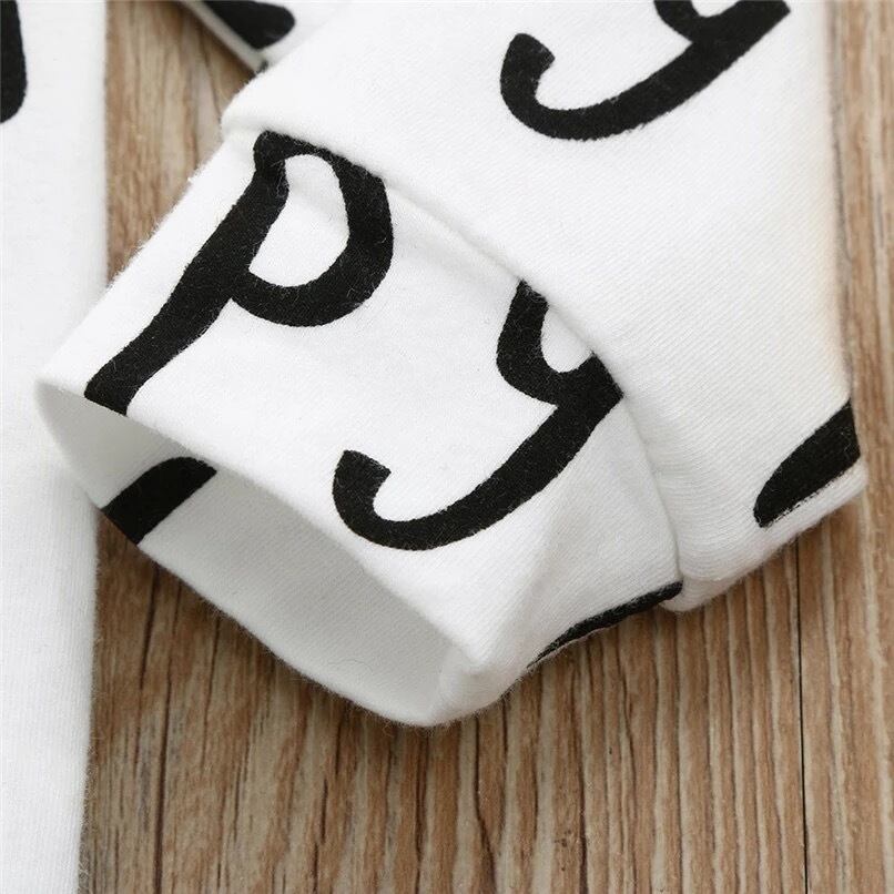 ★送料無料★ 女の子 男の子 長袖 長ズボン ロンパース モノトーン モノクロ ハッピー メッセージ キッズ 赤ちゃん ベビー 秋 冬 0歳 6ヶ月 1歳 2歳 3歳 4歳