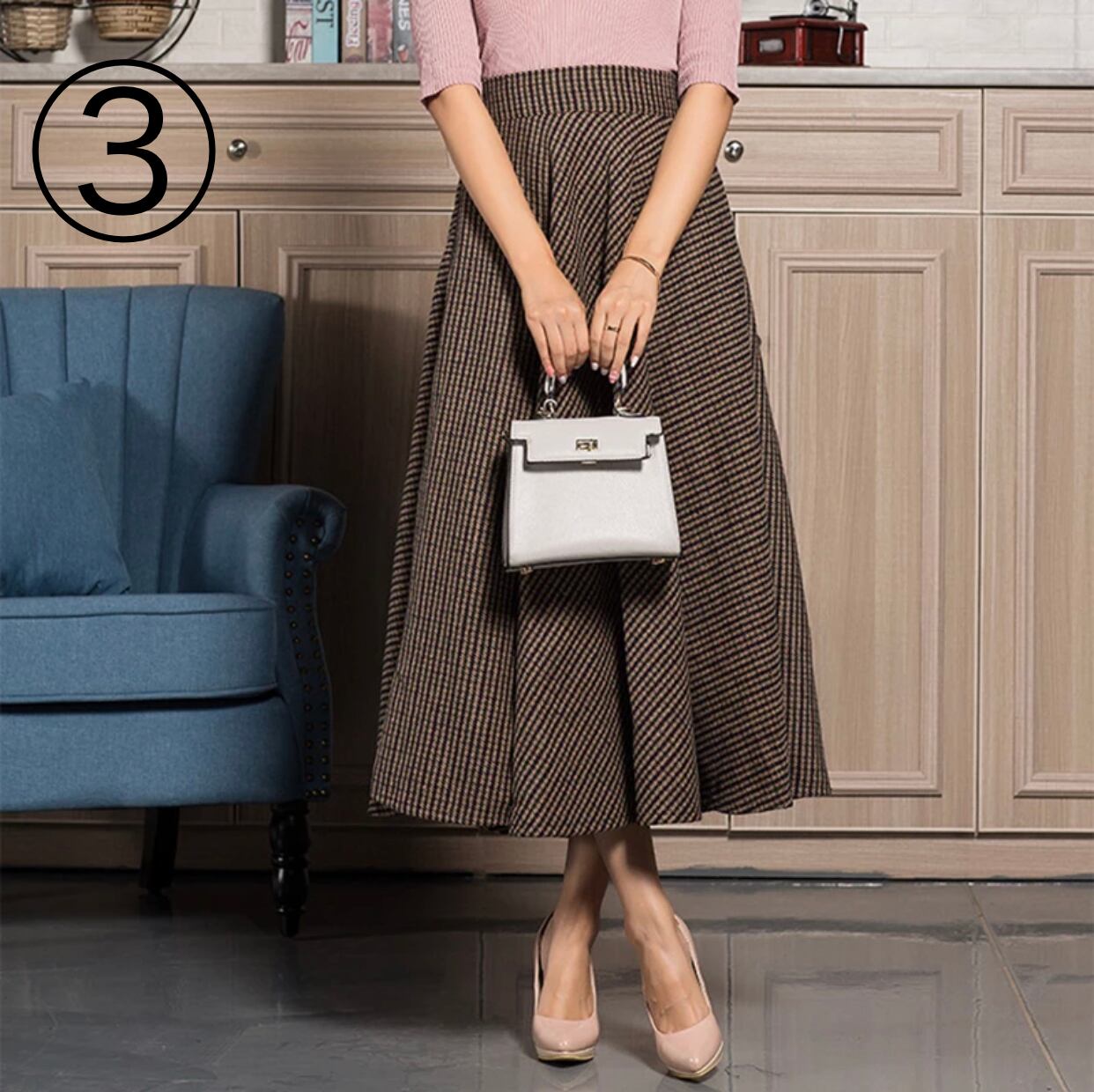 ★送料無料★ 6柄 デザイン③ レディース クラシカル クラシック スカート タータン チェック 柄 格子柄 ロング スカート ハイウエスト ウール Aライン S M L XL 2XL 3XL 大きいサイズ