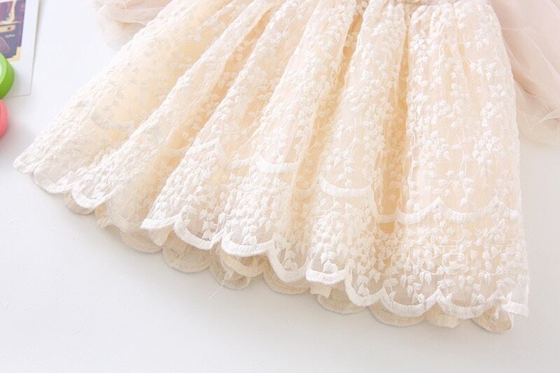 ★送料無料★ キッズ ベビー ワンピース レース 長袖 ウエストマーク 秋 冬 コットン ナチュラル