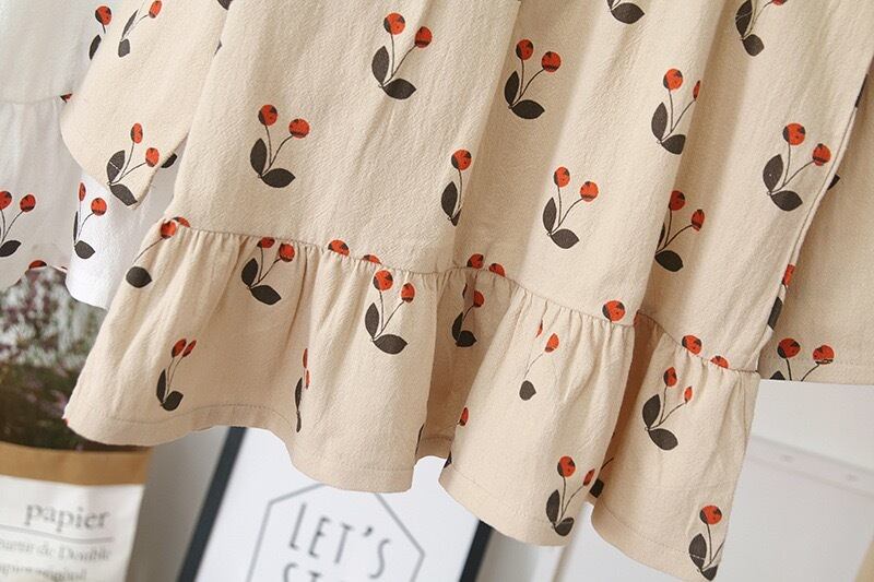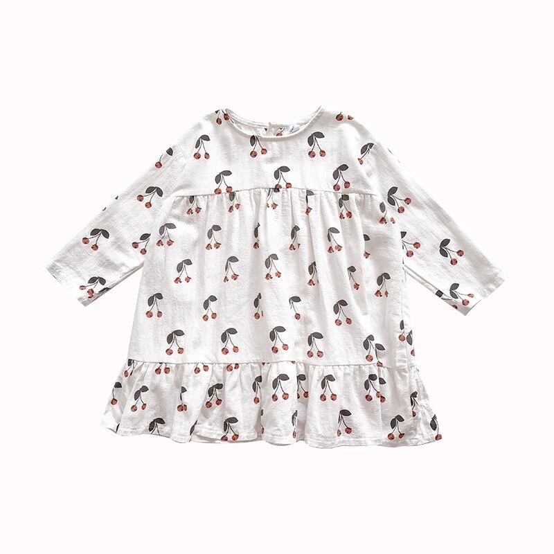 ★送料無料★ 2色 ホワイト 白 キッズ ベビー さくらんぼ サクランボ ワンピース 長袖 秋 冬 コットン