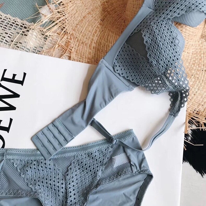★送料無料★ 4色 ブルー 青 レディース 薄型 シームレス ランジェリー パンツ ブラジャー セット ショーツ 女性用