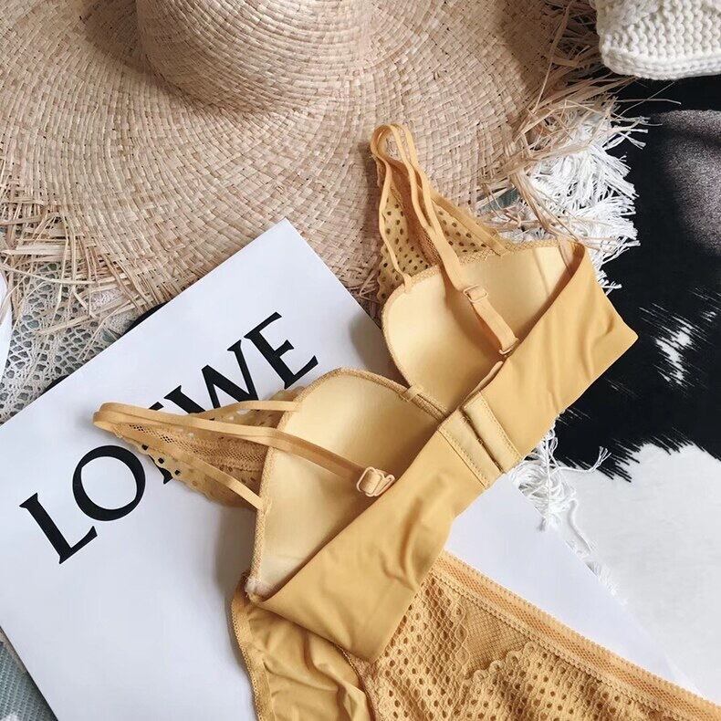 ★送料無料★ 4色 イエロー 黄色 レディース 薄型 シームレス ランジェリー パンツ ブラジャー セット ショーツ 女性用