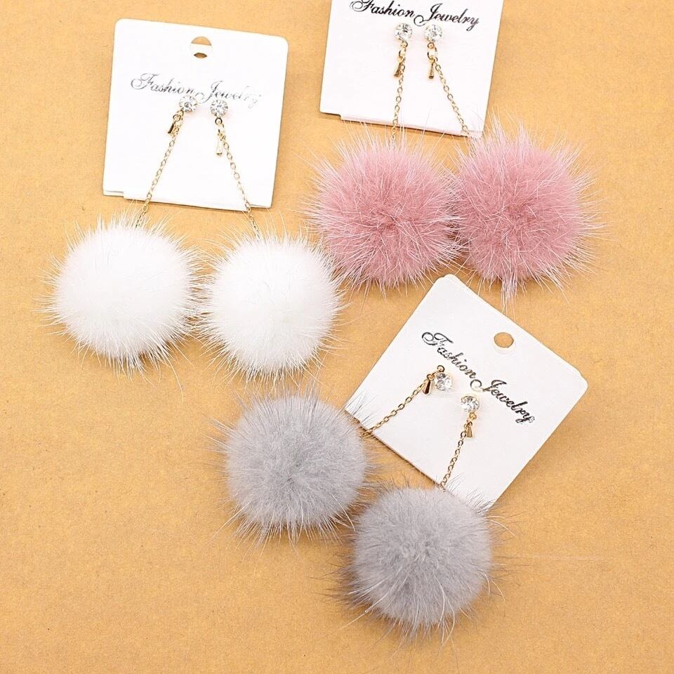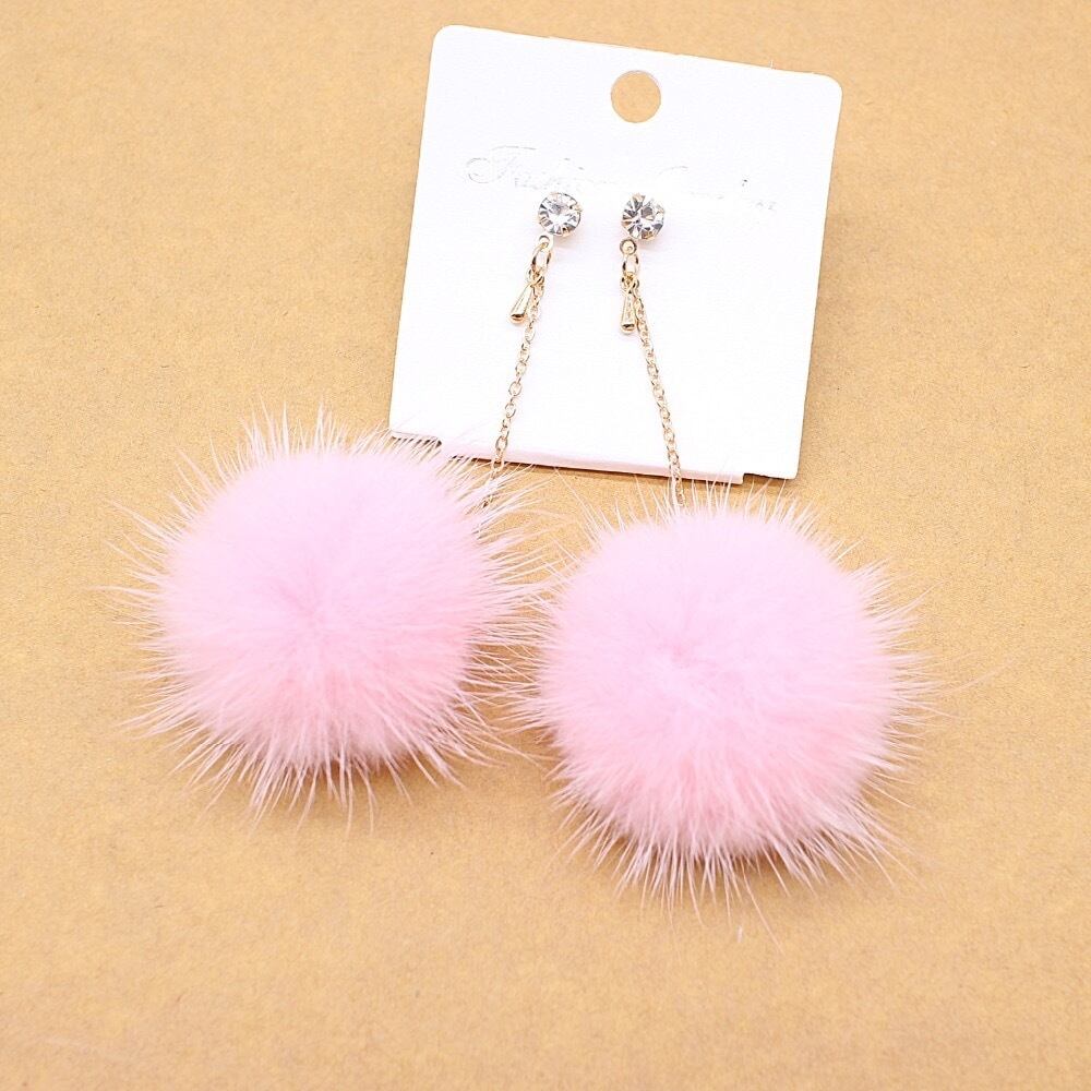 ★送料無料★ 8色 レディース ピアス ファー ぶら下がり 吊り下がり ボンボン アクセサリー キラキラ ストーン ゴールド 金