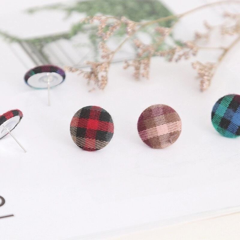 ★送料無料★ 3色 レディース ピアス チェック 布 テクスチャ 格子柄 秋 冬 アクセサリー キラキラ ストーン ゴールド 金