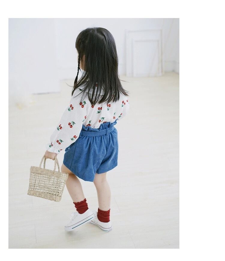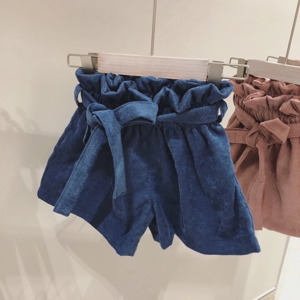 ★送料無料★ 3色 ブルー 青 女の子 キュロット パンツ リボン 秋 冬 おしゃれ キッズ ベビー 子供 2歳 3歳 4歳 5歳 6歳 7歳