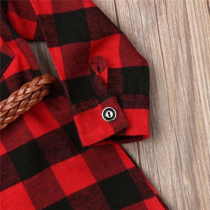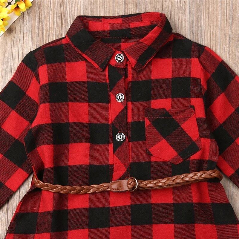 ★送料無料★ 2色 キッズ ベビー チェック シャツ ワンピース 長袖 秋 冬 ベルト付き