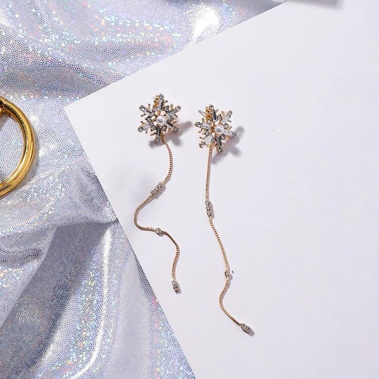 ★送料無料★ レディース ピアス 雪の結晶 雪 冬 ぶら下がり アクセサリー キラキラ ストーン ゴールド 金