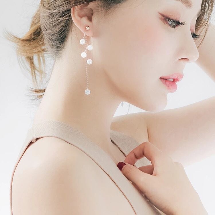 ★送料無料★ 2色 レディース ピアス パール風 真珠風 ぶら下がり アクセサリー キラキラ ストーン ゴールド 金 シルバー 銀