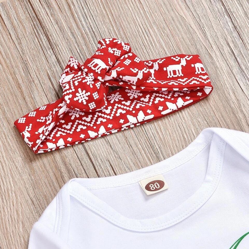 ★送料無料★ 4柄 クリスマス 女の子 長袖 長ズボン ロンパース ズボン ヘアバンド 帽子 セットメッセージ キッズ 赤ちゃん ベビー 秋 冬 0歳 6ヶ月 1歳 2歳 3歳