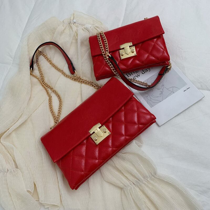 ★送料無料★ 5色 2サイズ ブラック 黒 レディース PUレザー 革 ハンドバッグ キルティング加工 ショルダーバッグ サコッシュ レザー チェーン 秋 冬 おしゃれ バッグ