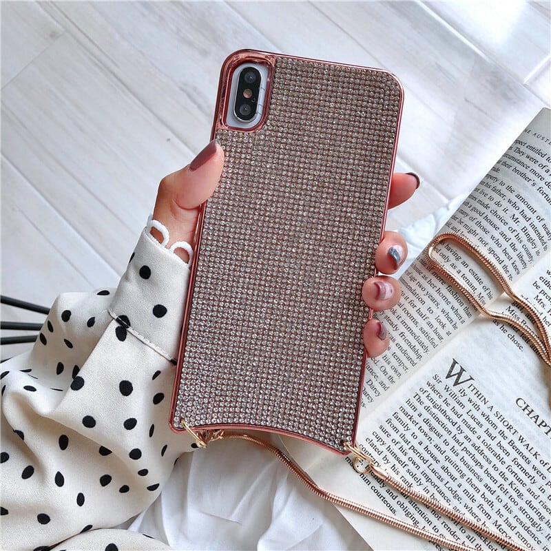 ★送料無料★ 4色 ピンク iPhone11対応 キラキラ ラインストーン ストーン 宝石 ネックストラップ ストラップ ショルダーストラップ iphoneケース アイフォンケース スマホケース