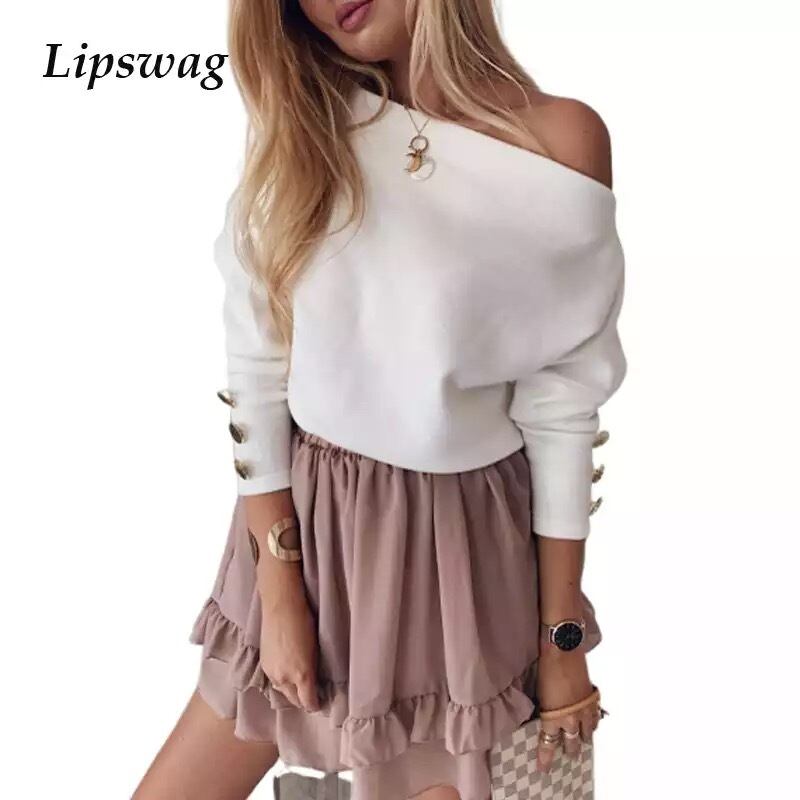 ★送料無料★ 3色 ピンク レディース ニット セーター オフショルダー 長袖 プルオーバー ボタン 秋 冬 女性 大きいサイズ S M L XL 2XL