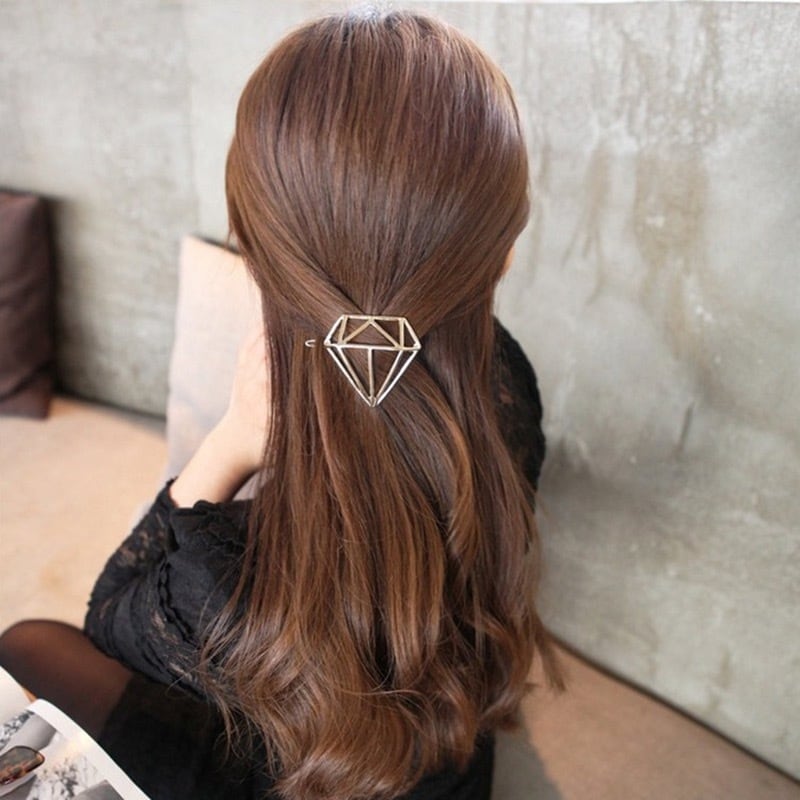 ★送料無料★ 2色 レディース 宝石 ダイヤモンド型 ダイヤ ダイア ヘアピン ヘアクリップ ヘアアクセサリー ゴールド シルバー 金 銀