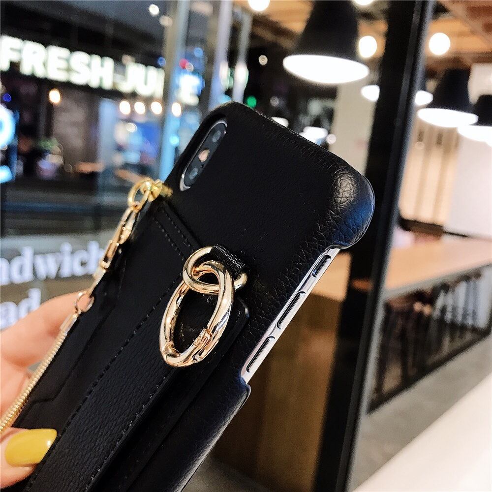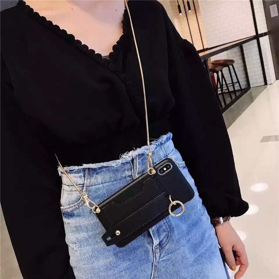 おしゃれなカードケース、チェーンストラップ付きのiPhoneケース