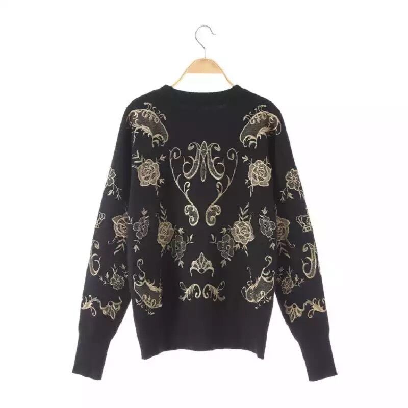 ★送料無料★ レディース ニット セーター 花柄 フラワー ラグジュアリー コレクション 黒 ゴールド ブラック 金 S M L