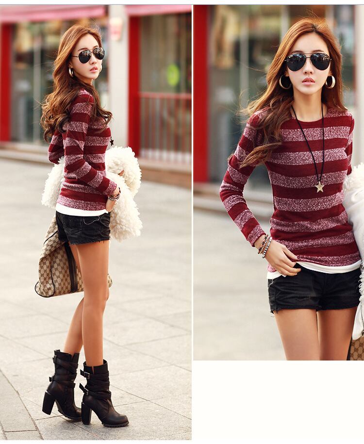 ★送料無料★ 3色 レッド 赤 レディース ボーダー ニット セーター 大きいサイズ S M L XL 2XL