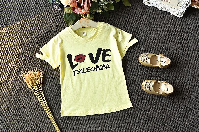 ★送料無料★ 2色 黄色系 女の子 ラブ LOVE Tシャツ アシンメトリー チェック スカート リボン セット セットアップ 子供 キッズ ベビー 秋 冬 2歳 3歳 4歳 5歳 6歳 7歳