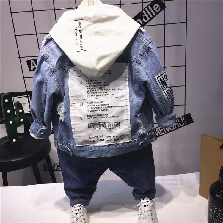 かっこいいGジャンにホワイトパーカー、パンツのセット