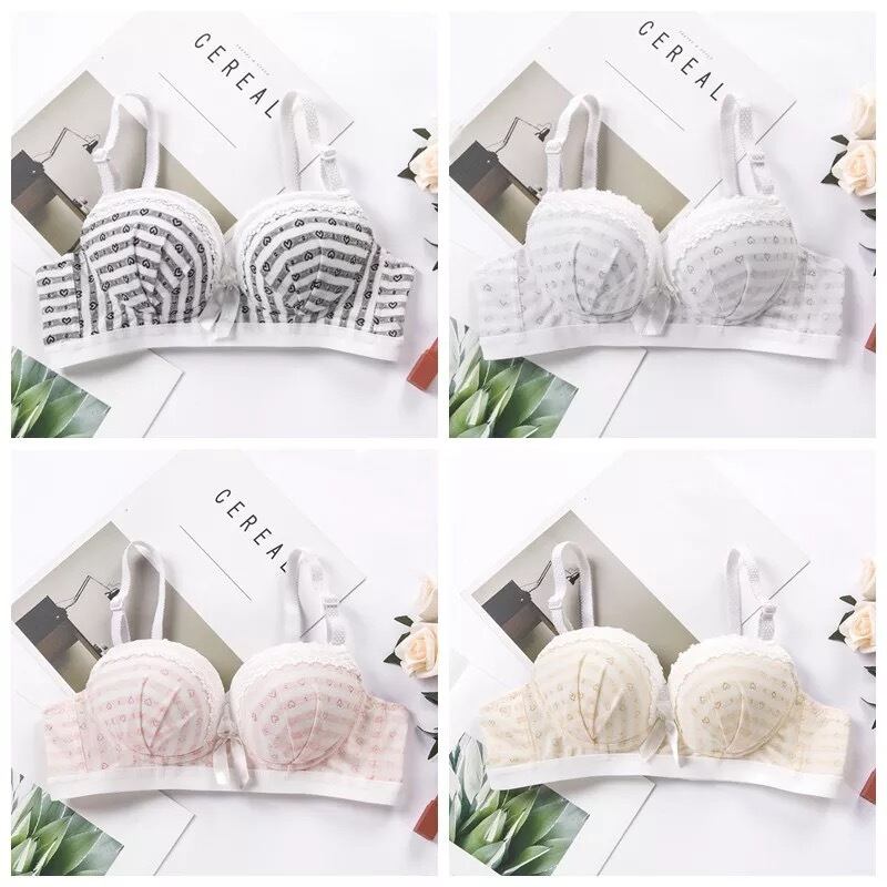 ★送料無料★ 4色 イエロー 黄色 レディース ハート ボーダー ワイヤレス 柄 模様 ランジェリー パンツ ブラジャー セット ショーツ 女性用