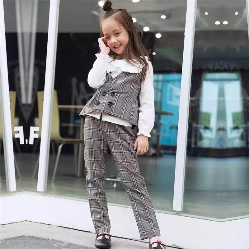 ★送料無料★ ジュニア 女の子 2色 ブラック チェック 格子柄 トップス パンツ セット セットアップ 子供 キッズ おしゃれ 秋 冬