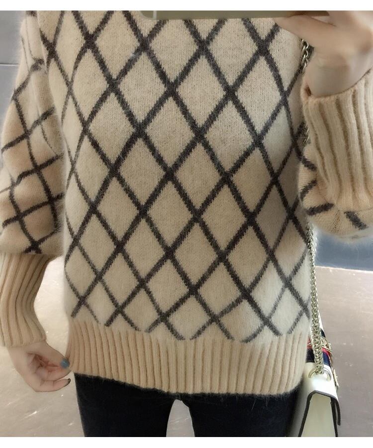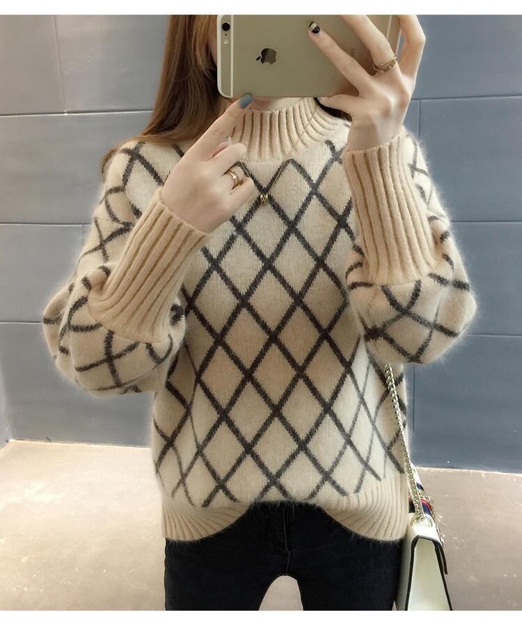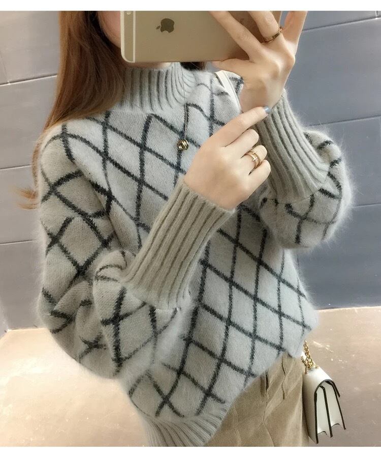 ★送料無料★ 5色 レディース チェック タートルネック ニット セーター ワンサイズ プルオーバー 秋 冬