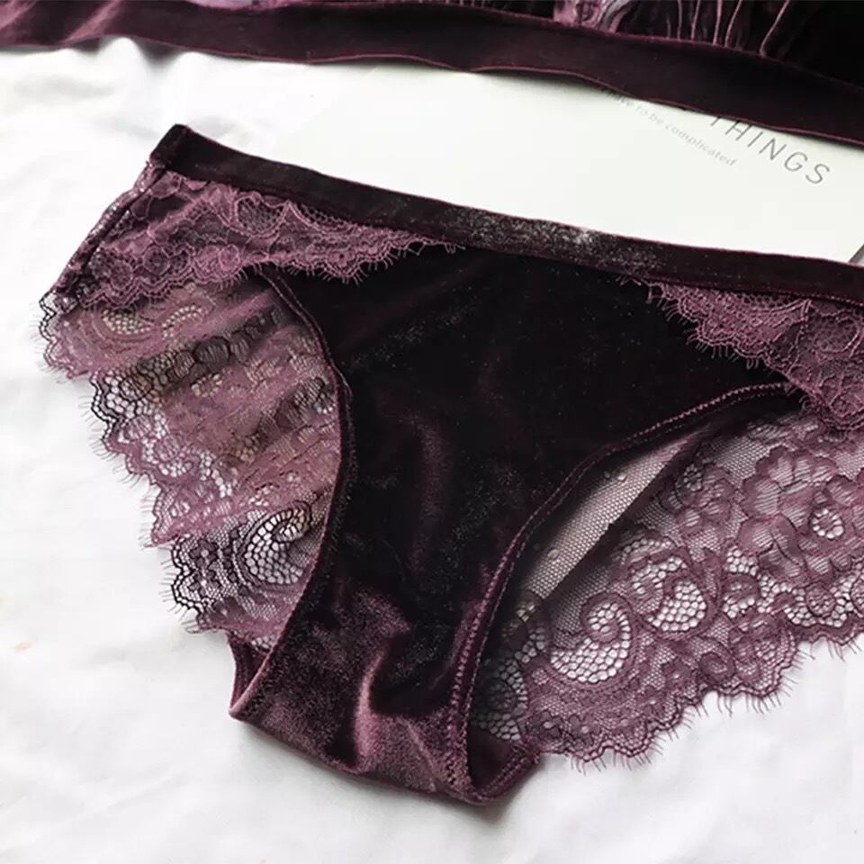 ★送料無料★ 5色 ピンク ベルベット ベロア レディース 花柄 レース 柄 模様 ランジェリー パンツ ブラジャー セット ショーツ 女性用