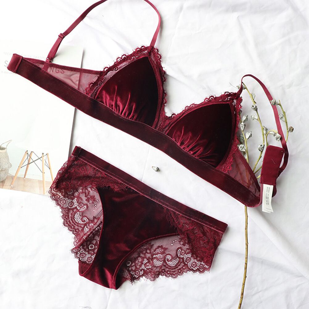 ★送料無料★ 5色 レッド 赤 ベルベット ベロア レディース 花柄 レース 柄 模様 ランジェリー パンツ ブラジャー セット ショーツ 女性用