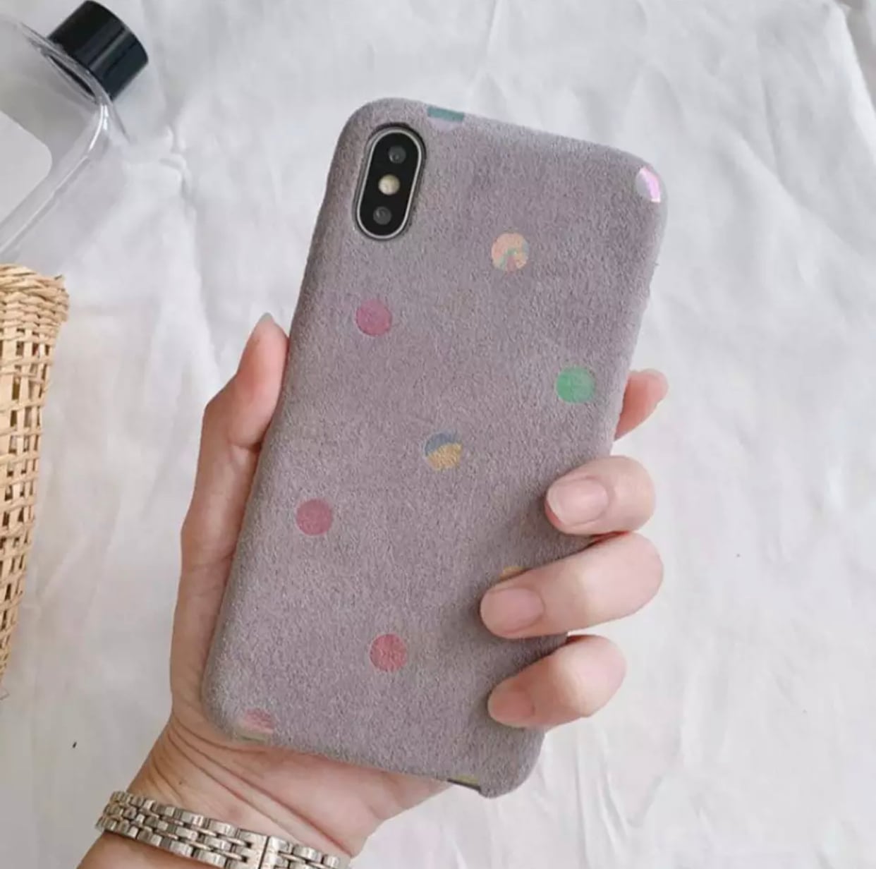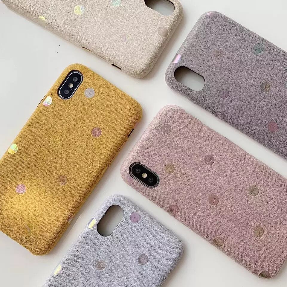 ★送料無料★ 5色 イエロー 黄色 iPhone11対応 パステルカラー ドット 水玉 ぬいぐるみ生地 ふわふわ フワフワ 優しいカラー iPhoneケース スマホケース おしゃれ 最新 シンプル
