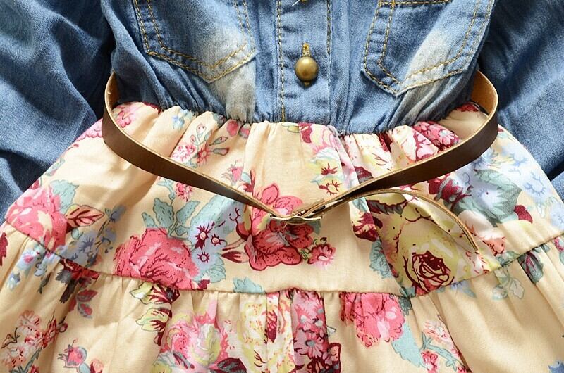 ★送料無料★ 2色 ネイビー 紺色 女の子 デニムシャツ 花柄スカート セット フリル 子供 キッズ 秋 冬 2歳 3歳 4歳 5歳