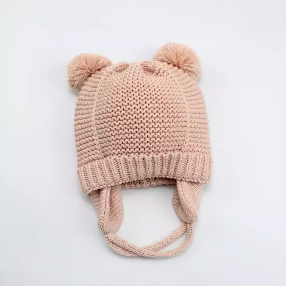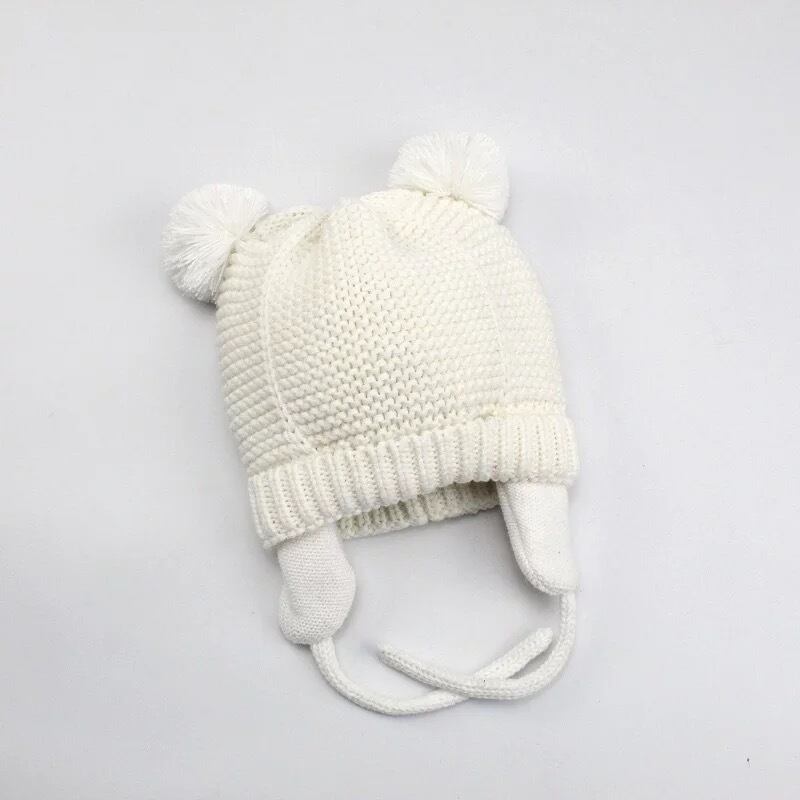 ★送料無料★ 男の子 女の子 4色 ホワイト 白 0歳 1歳 2歳用 ボンボン ニット帽 帽子 キャップ 赤ちゃん ベビー キッズ