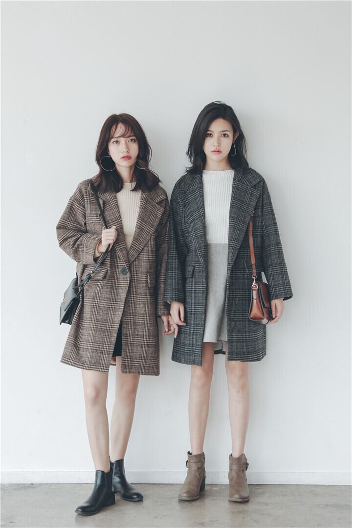 ★送料無料★ 2色 グレー 灰色 レディース チェック 格子柄 コート 秋 冬 大きいサイズ S M L XL
