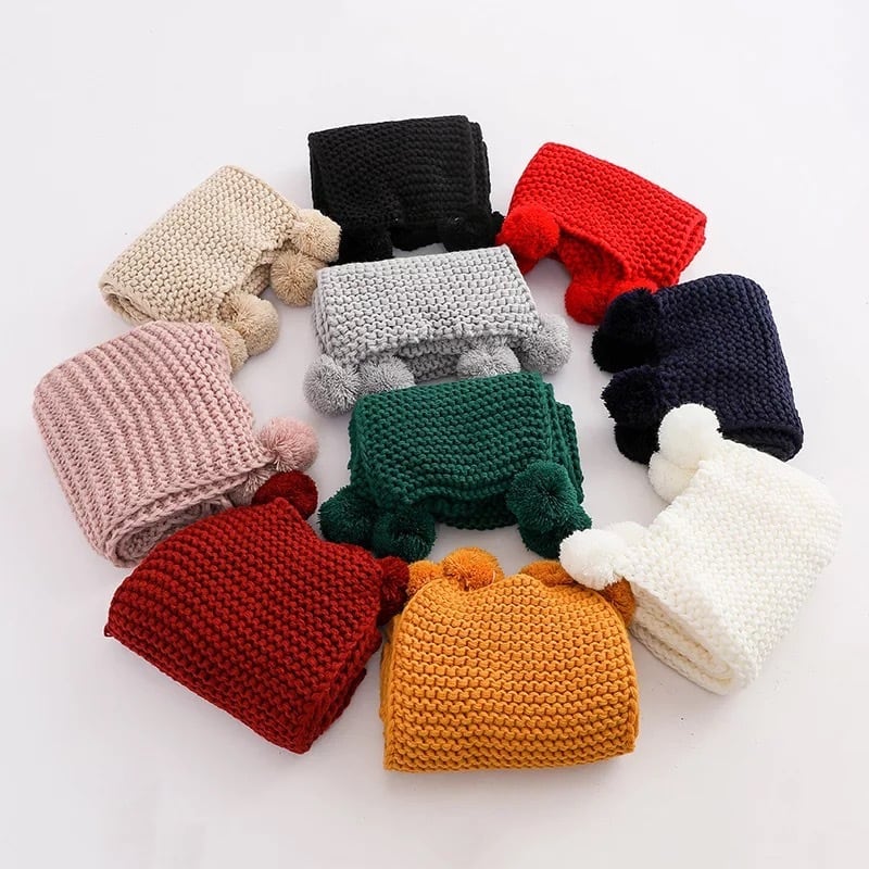★送料無料★ 男の子 女の子 10色 ざっくり編み ファー ボンボン マフラー ストール スカーフ 子供 キッズ ボンボン フワフワ モコモコ ふわふわ もこもこ あったかい 秋 冬 おしゃれ