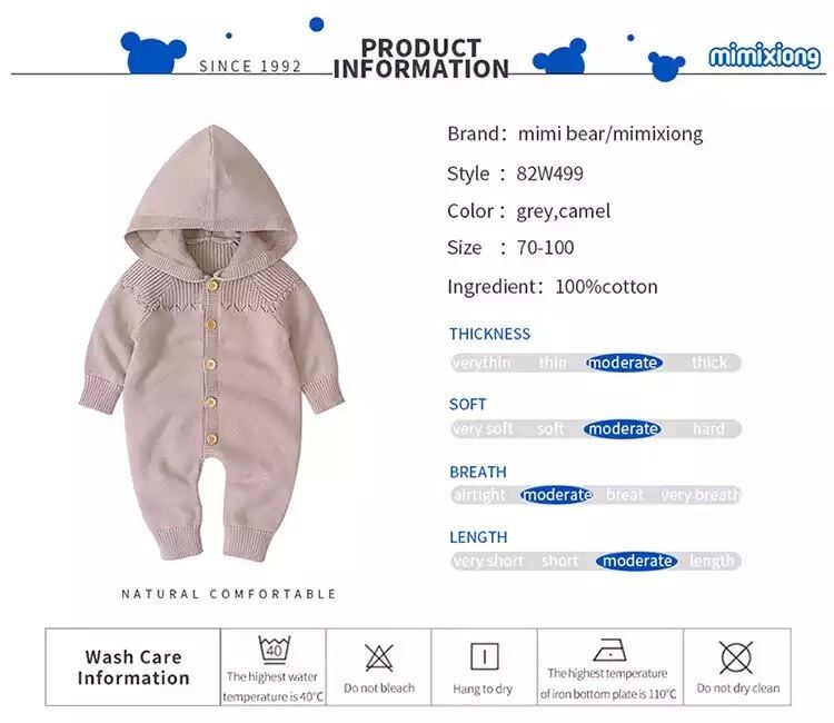 ★送料無料★ 2色 ピンク 女の子 男の子 ニット風 フード付 優しいカラー パステル ロンパース キッズ 赤ちゃん ベビー 秋 冬 0歳 6ヶ月 1歳 2歳