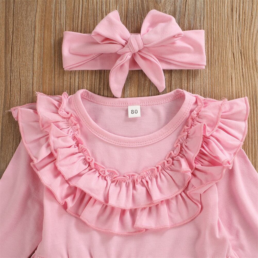 ★送料無料★ 女の子 3色 ブラウン 茶色 フリル ヘアバンド付き 長袖 キッズ 子供 2歳 3歳 4歳 5歳 6歳