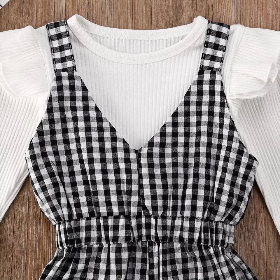 ★送料無料★ 女の子 チェック サロペット フリル ブラウス セット ロンT 長袖 長ズボン 格子柄 オールインワン ジャンプスーツ キッズ 子供 ベビー 秋 冬 2歳 3歳 4歳 5歳 6歳