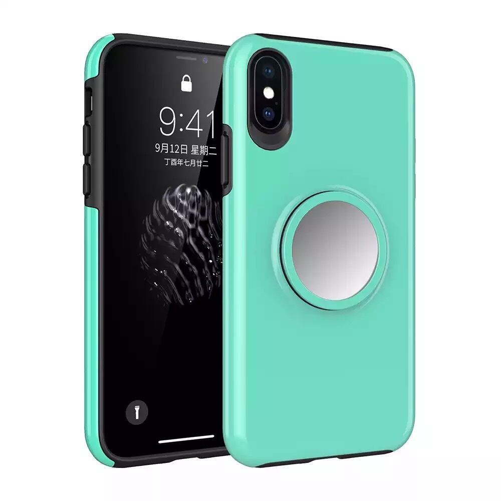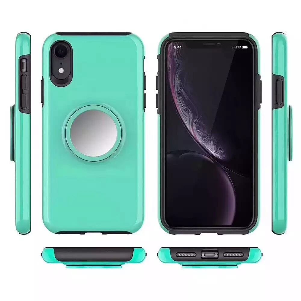 ★送料無料★ 5色 グレー 灰色 iPhone11対応 バンカーリング 折りたたみ スマホリング ミラー iPhoneケース スマホケース おしゃれ 最新 シンプル ハード PC