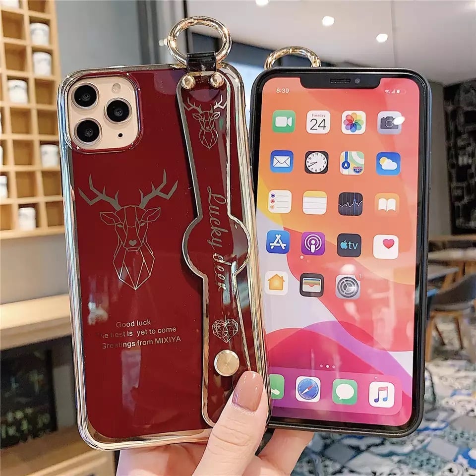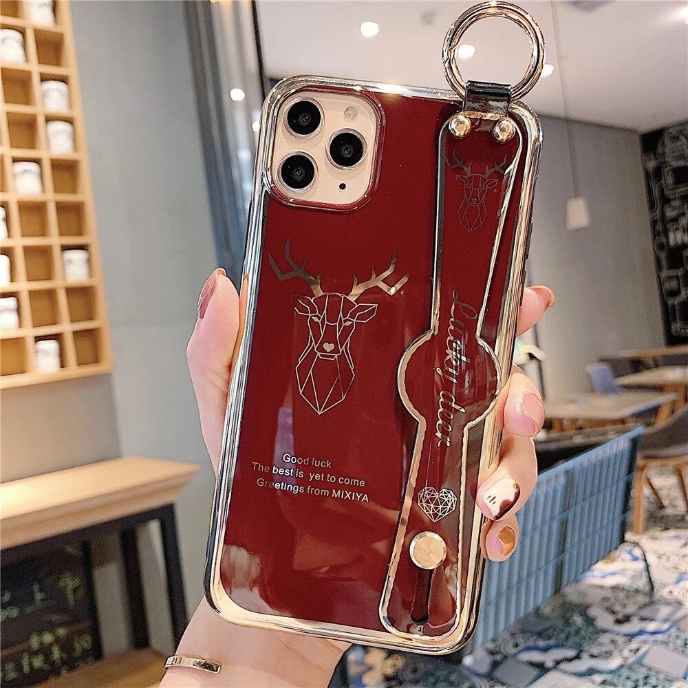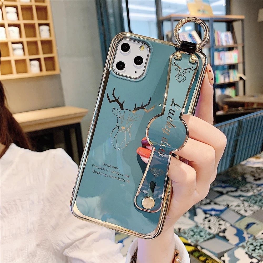 かわいい鹿のハンドストラップ付きiPhoneケース