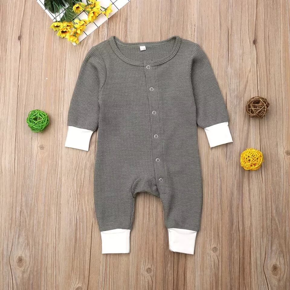 ★送料無料★ 2色 グレーグリーン 男の子 女の子 シンプル 優しいカラー 長袖 ロンパース キッズ 赤ちゃん ベビー 秋 冬 0歳 6ヶ月 1歳 2歳