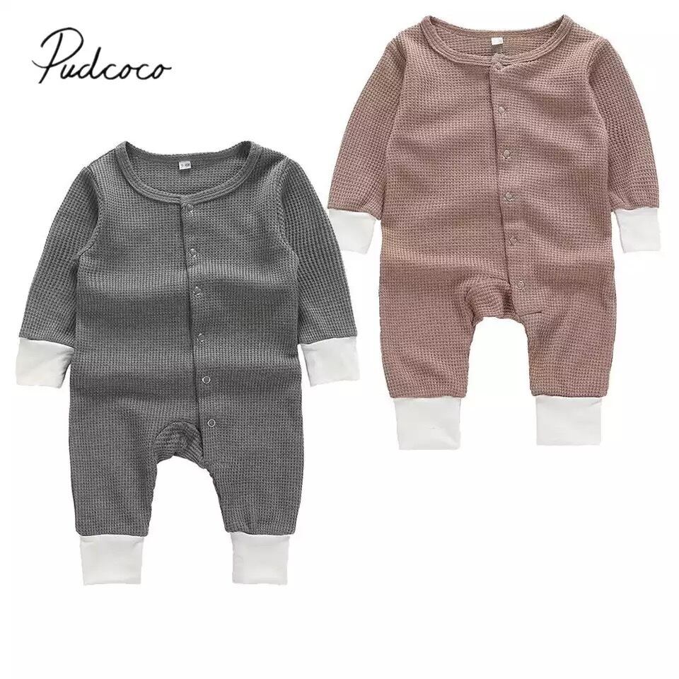 ★送料無料★ 2色 ブラウン 茶色 男の子 女の子 シンプル 優しいカラー 長袖 ロンパース キッズ 赤ちゃん ベビー 秋 冬 0歳 6ヶ月 1歳 2歳