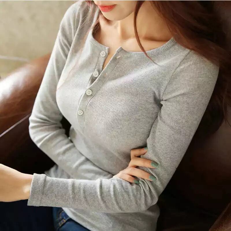 ★送料無料★ 4色 ホワイト 白 レディース ヘンリーネック ロングTシャツ ロンT カットソー 長袖 秋 冬 大きいサイズ S M L XL 2XL 3XL