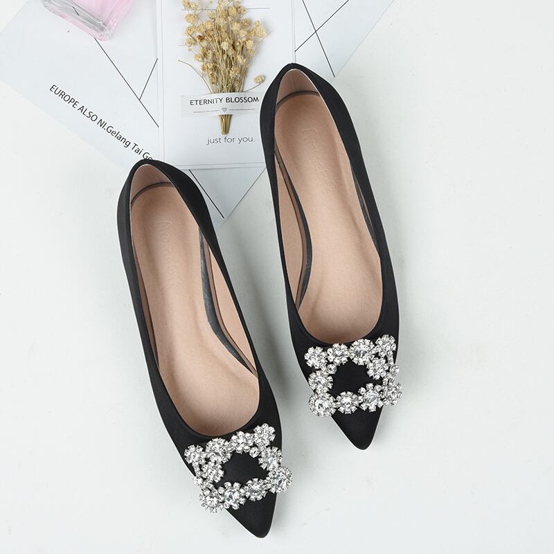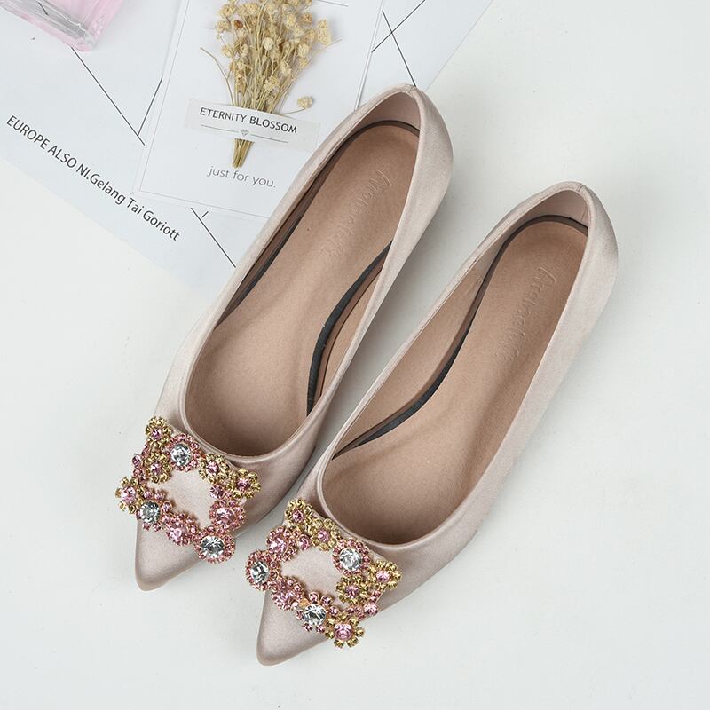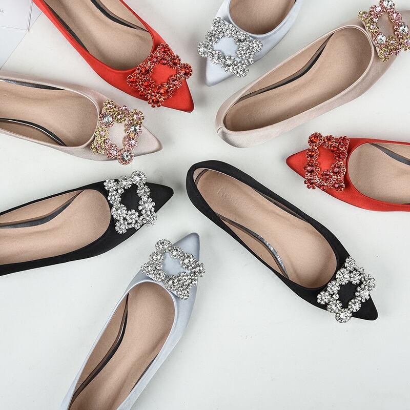 ★送料無料★ 4色 レディース シューズ ー 本革 レザー 皮 バックル キラキラ ビジュー ストーン バレエシューズ ぺたんこ ペタンコ 靴 ポインテッドトゥ