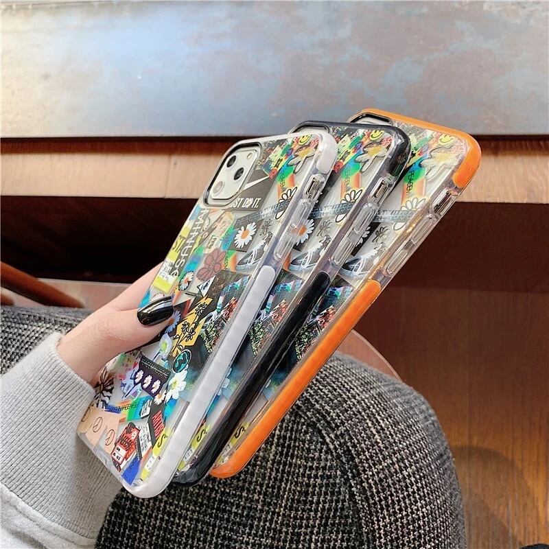 ★送料無料★ 3色 ブラック 黒 iPhone11対応 クリア ケース 柄 アート フラワー 花 iPhoneケース スマホケース おしゃれ 最新