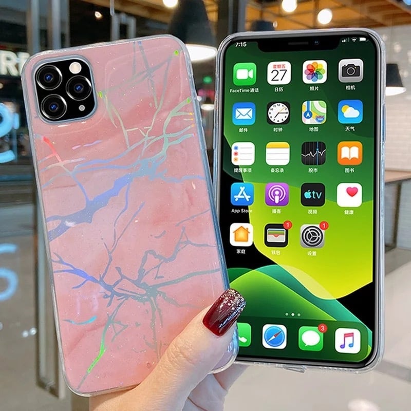 ★送料無料★ 3色 iPhone11対応 キラキラ マーブル 大理石 ピンク 水色 スカイブルー iPhoneケース スマホケース おしゃれ 最新