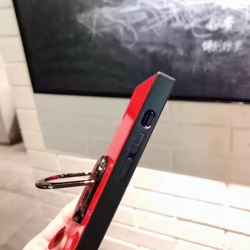 ★送料無料★ 4色 レッド 赤 iPhone11対応 スクエア スマホリング バンカーリング スタンド iPhoneケース スマホケース おしゃれ 最新