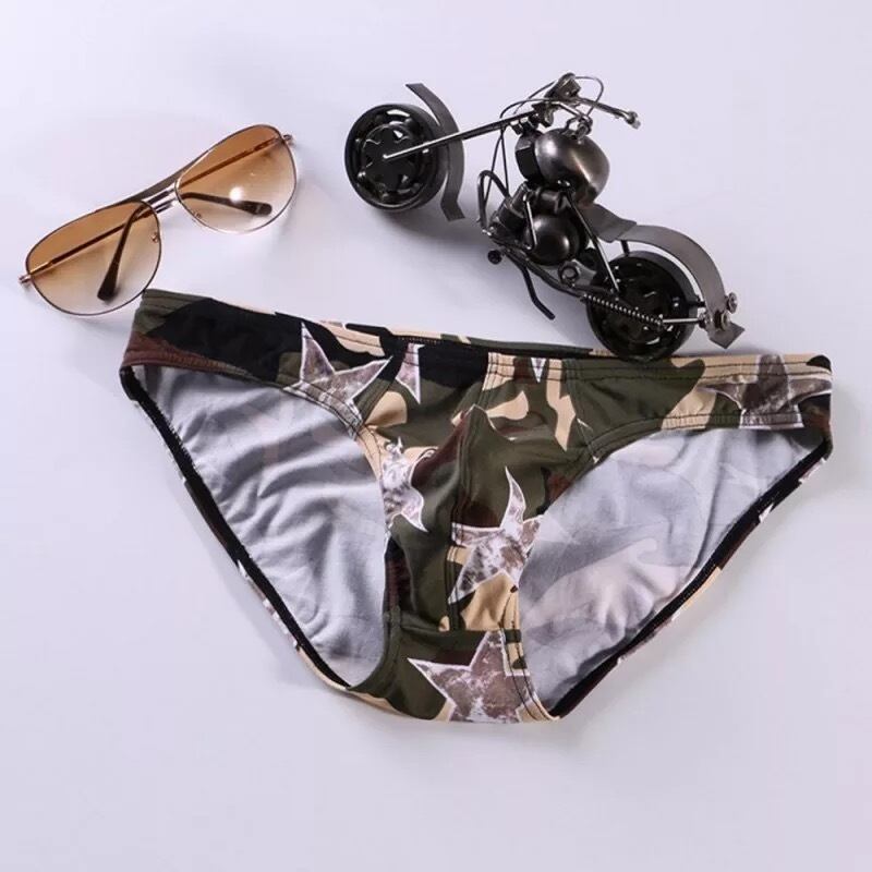 ★送料無料★ 4柄 スター 星 迷彩 カモフラ カモフラージュ メンズ 男性 柄 模様 パンツ アンダーウェア 下着 パンツ ブリーフ ビキニ 大きいサイズ有り
